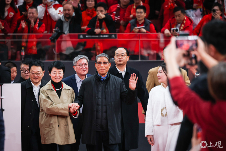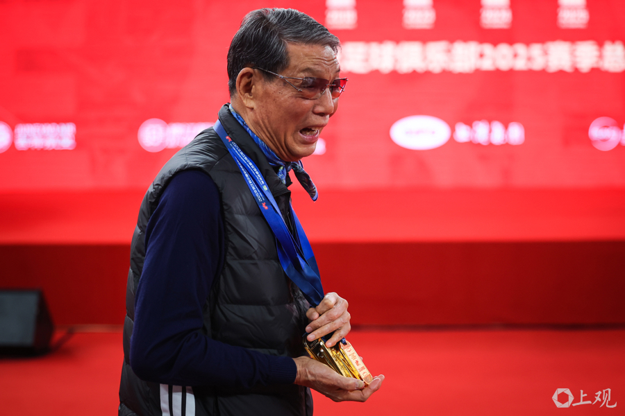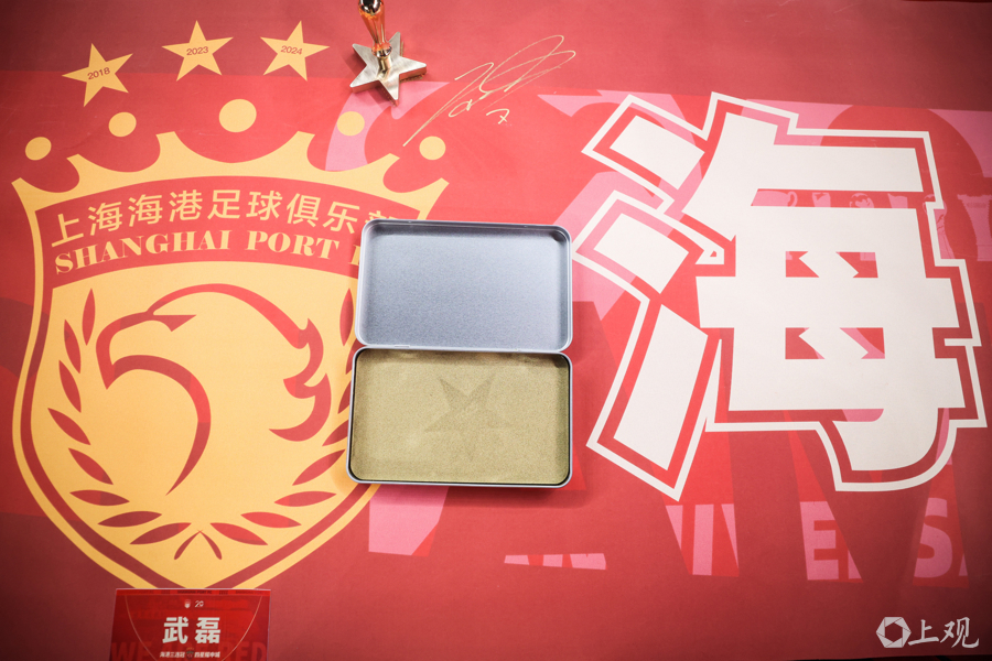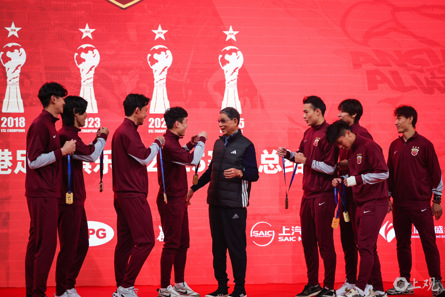 徐根宝指导亲临现场,武磊、颜骏凌、吕文君、王燊超、刘若钒、张琳芃、蒯纪闻、李新翔几位出自崇明基地的海港球员,将冠军奖牌佩戴在徐根宝的胸前,表达他们对恩师的感谢,场面温馨感人。
